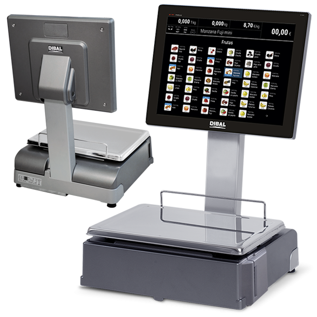 PC scales in self-service format with 2" linerless labels printer with autocutter and 15" touch screen.