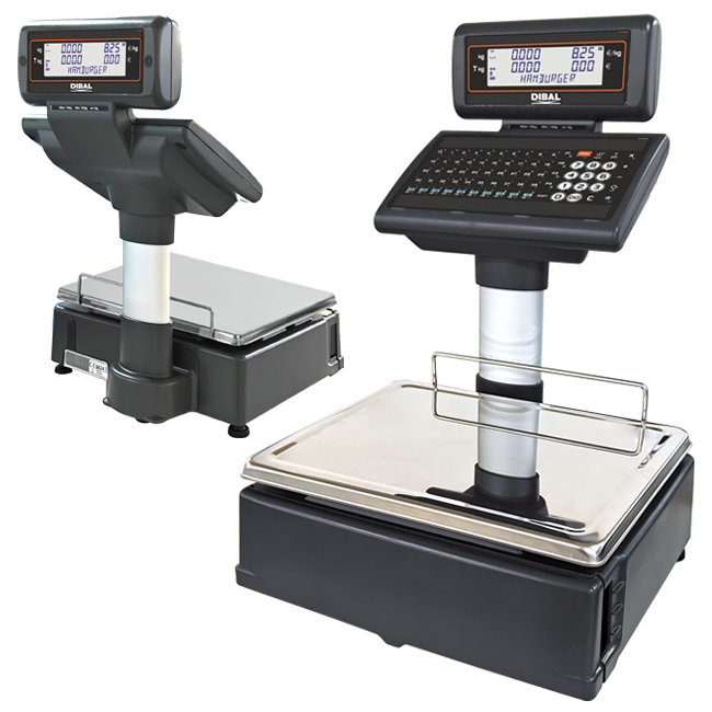 Electronic scales in double body format with labels printer (also suitable for receipts). Up to 10,000 PLUs and 20 vendors.